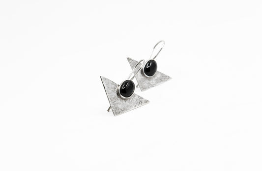 Black Onyx Triangle Earrings